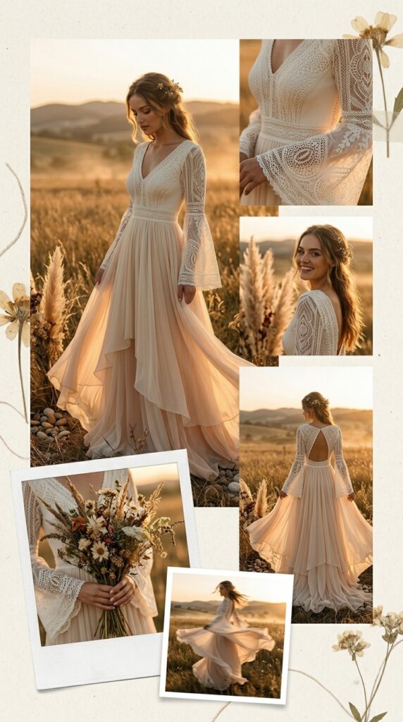 Boho wedding dresses celebrate freedom, creativity, and effortless beauty. They do not follow strict rules. They do not chase heavy sparkle or dramatic volume. Instead, they embrace flow, texture, and personality. If you picture yourself walking barefoot on grass, exchanging vows under open skies, or dancing at sunset with loose waves in your hair, a boho wedding dress may feel like home. Modern bridal fashion supports this shift toward authenticity. Editors at Vogue and Harper’s Bazaar frequently highlight relaxed silhouettes, vintage lace, and minimalist details in contemporary bridal collections. Brides today want comfort and character. They want a gown that tells their story without shouting. Let us explore what truly defines boho wedding dresses for free-spirited brides and how to choose the right one with confidence and clarity.