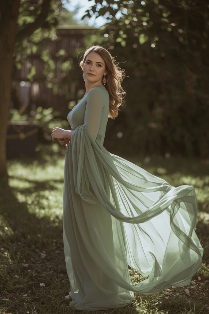 Compared to structured ball gowns, those dresses with flowy chiffon skirts, gentle sleeves, and loose silhouettes often have a lower price tag. Also, they seem so light and comfortable, which is great if you are planning an outdoor wedding.