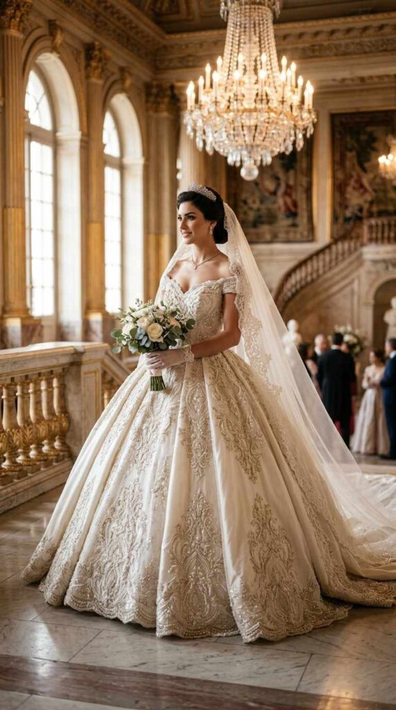 Ball gowns have a fitted full length body and extended skirt, which means you create a long, elegant fairy tale princess look that has been a staple of women’s fashion for hundreds of years. Whether at a royal wedding or a more contemporary wedding, that silhouette is timeless!