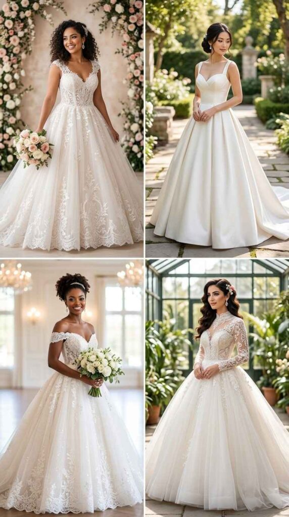 • Curvy or plus-size brides should look for structured fabrics and supportive designs that provide comfort and confidence.