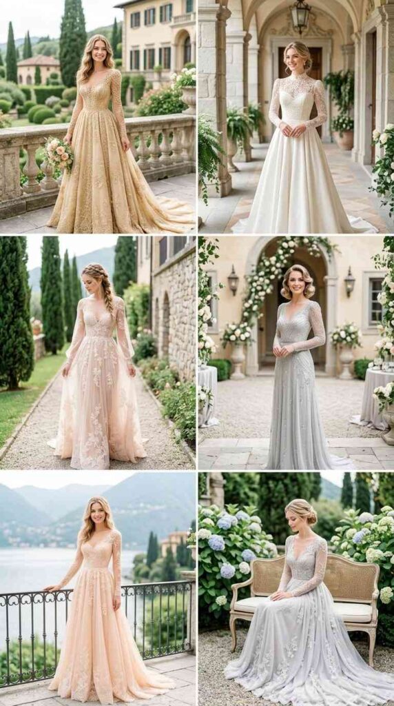 Dresses from the 1940s often feature structured shoulders, long sleeves, and modest cuts. They are perfect for brides seeking a refined and elegant style.
